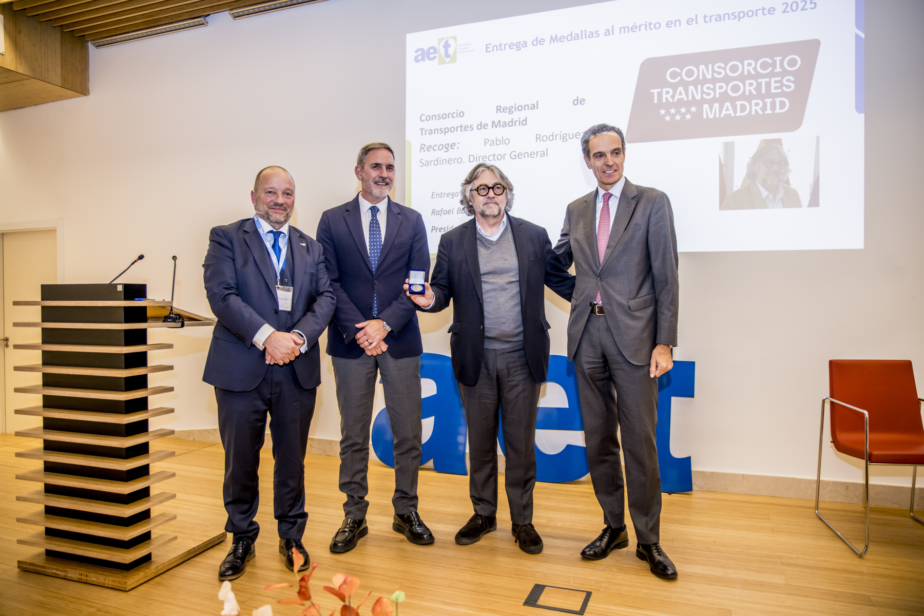 La Asociación Española del Transporte (AET) celebró en Madrid la IV edición de las Medallas al Mérito en el Transporte, un referente para movilidad, logística e infraestructuras en España. La ceremonia, conducida por Joudia Boujdaini (vicepresidenta de AET), reunió a más de cien profesionales y representantes institucionales.